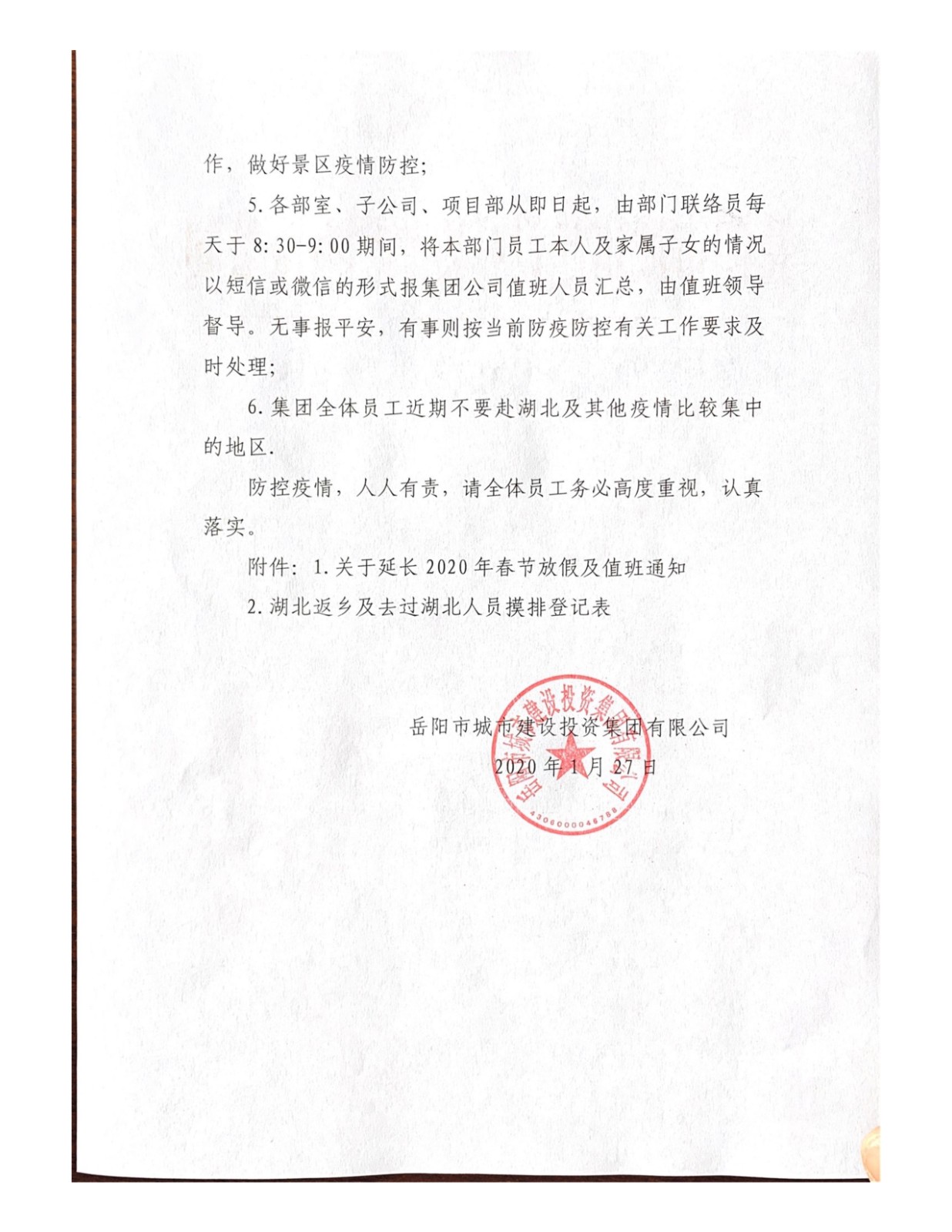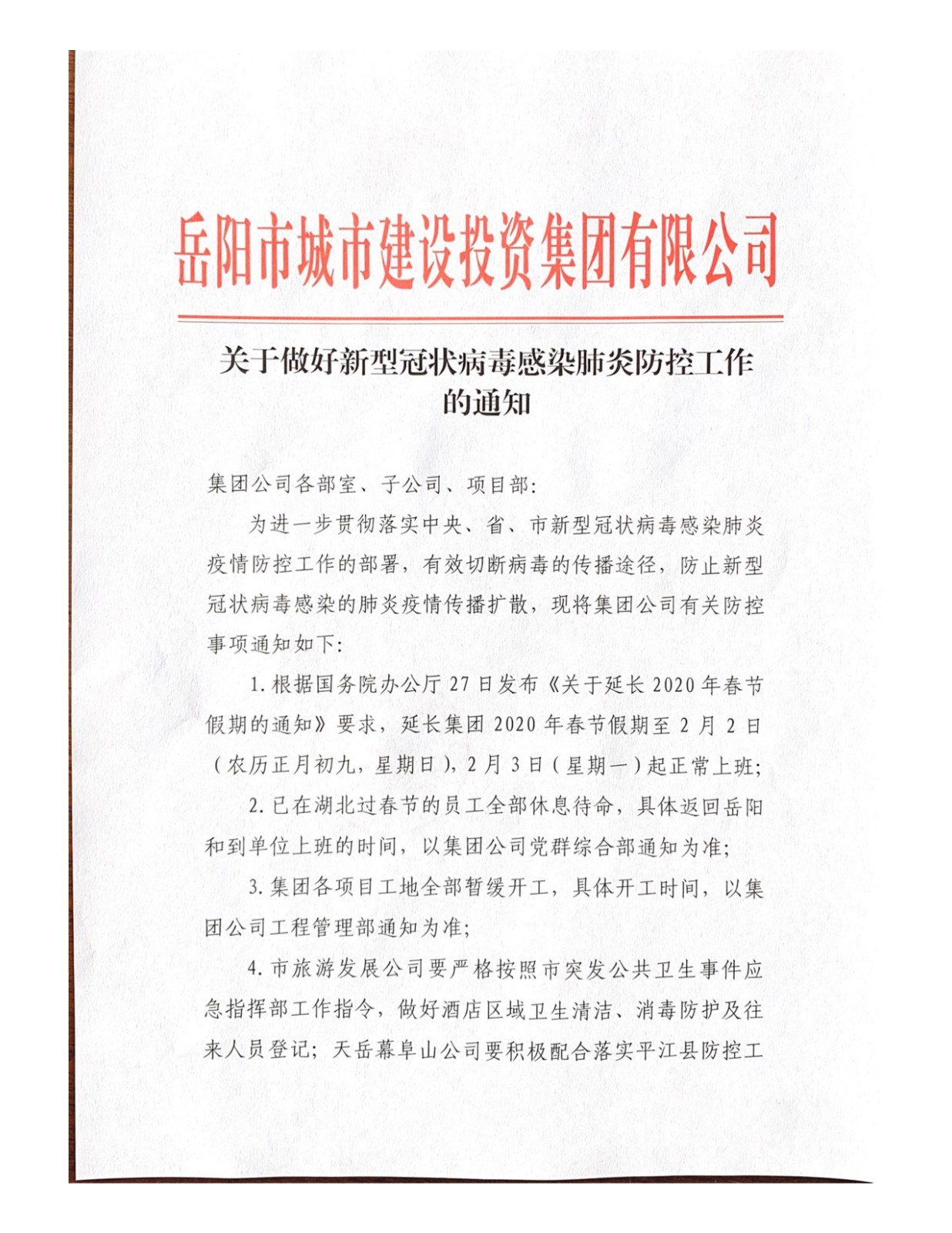 关于做好新型冠状病毒感染肺炎防控工作的通知